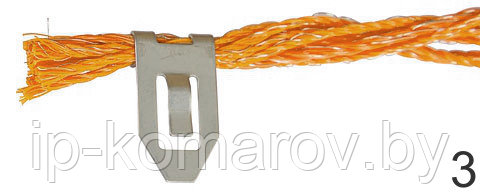 Контур электроизгороди из сетки для овец замыкается с помощью специальных встроенных клемм на первом и последнем столбике сетки (фото 3). Клемма, как-бы собирает хвостики рядов в один пучок (фото 4). Получается клемма вначале и клемма в конце сетки. В случае увеличения периметра к клемме последнего столбика первой сетки, вручную крепится клемма первого столбика второй сетки (фото3).